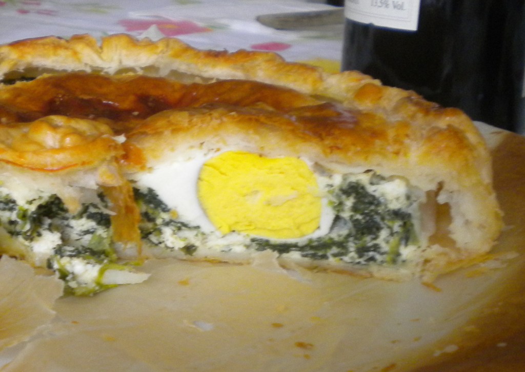 A torta “pasqualina” é um rito na Páscoa italiana. Está presente no almoço do domingo de Páscoa e na “Pasqueta” que é o dia de pic-nic por tradição, marcando o início da primavera. Pode ser feita com massa folhada ou massa de empadão normal que fica também uma delícia. No recheio tem poucos ingredientes, mas a presença do ovo diferencia das comuns tortas salgadas.