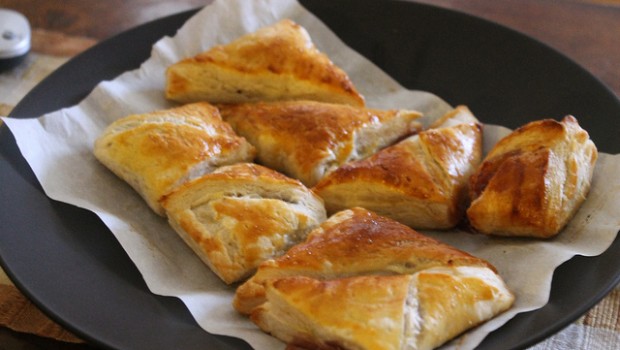 Fazer as trouxinhas como um pacote e pincelar com as gemas.