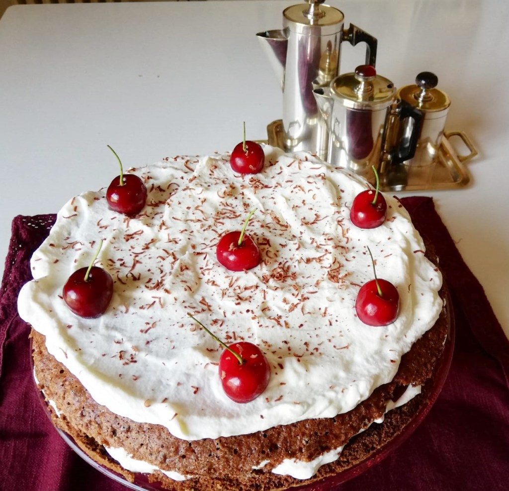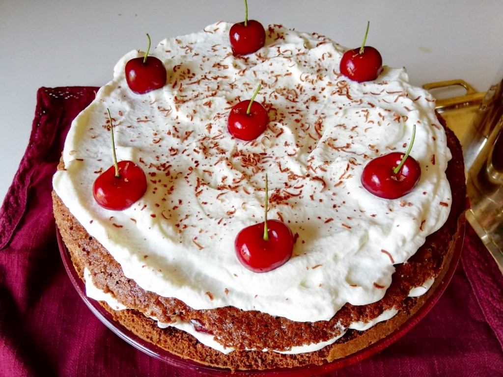 É uma clássica torta alemã. Parece complicada mas não é. Basicamente é formada por camadas de pão de ló com cacau e recheada com cerejas em calda e creme de leite fresco batido. Se não for época de cereja ou for difícil de encontrar, pode-se fazer com as cerejas em conserva em calda (encontra-se em muitas receitas alemãs). Conta muito a parte levemente alcoólica.