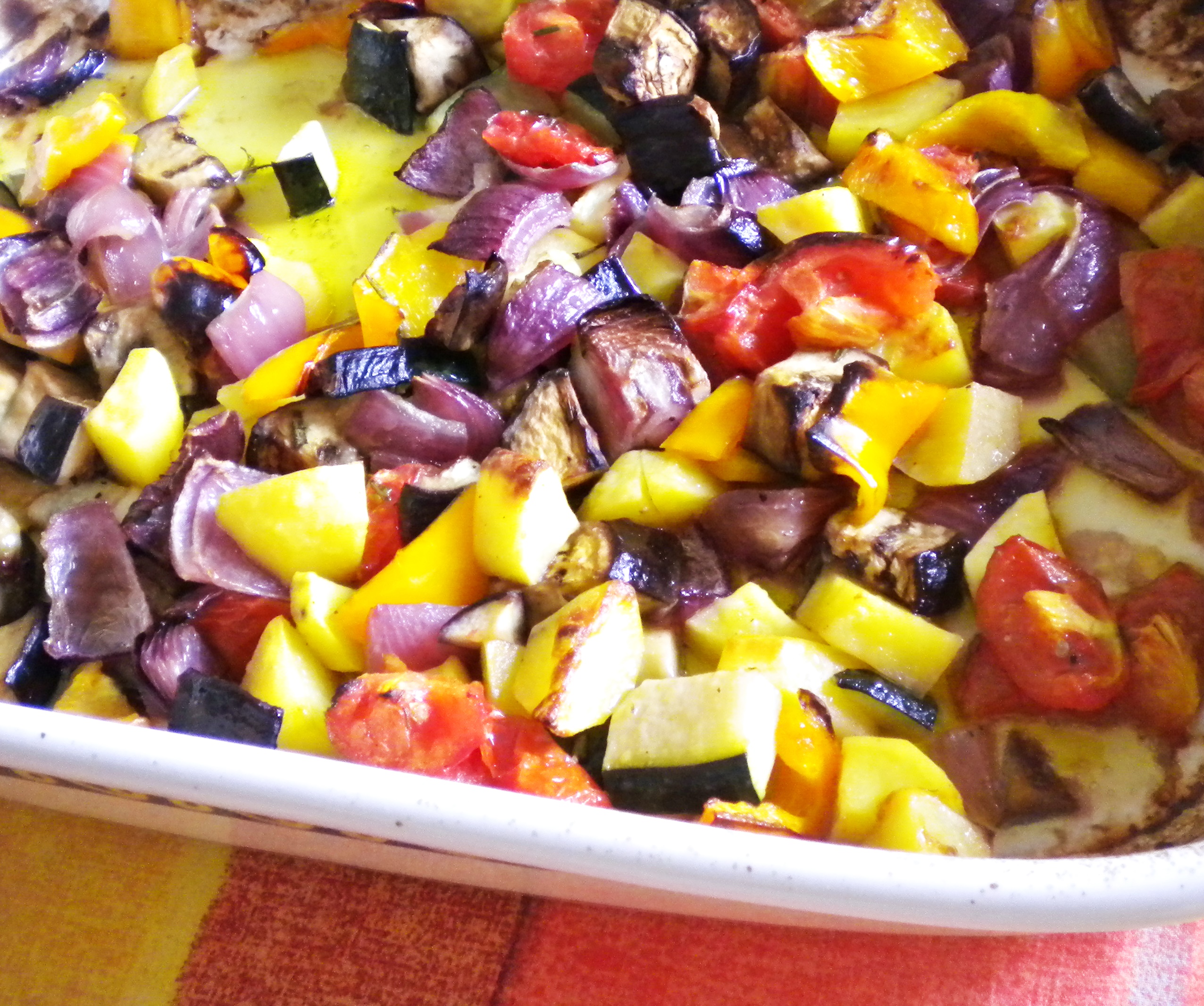 Esta receita sempre agrada a todos e completa a refeição. As verduras podem variar, o tempero é muito simples e aí está o segredo. Só azeite, um pouco de tomilho ou manjerona ou orégano melhor se forem frescos, sal e pimenta preta. É importante cortar mais ou menos do mesmo tamanho, e misturar bem, antes de levar ao forno. Acompanha tudo!!!!