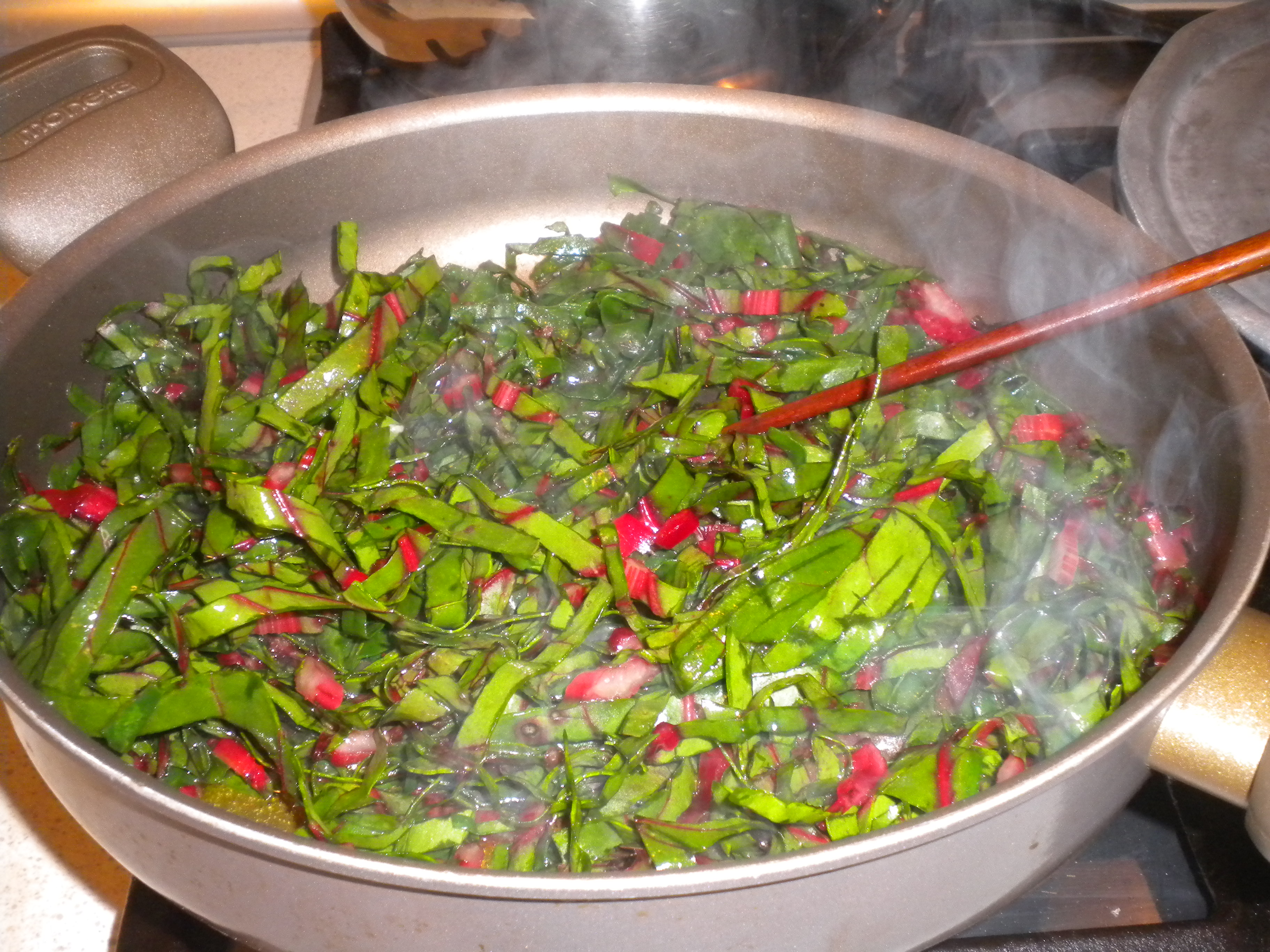 Depois que comecei a postar receitas (re) descobri muitos legumes, este foi uma das últimas descobertas, vi sábado no mercado e não resisti. Desde sempre comemos beterraba, mas nunca tinha comido as folhas, que são ricas em potássio, ferro, cálcio e vitaminas. Tem um sabor suave e saboroso. Preparei como a couve, cortada em tirinhas e passada rapidamente na panela com óleo de oliva, sal e pimentinha vermelha!