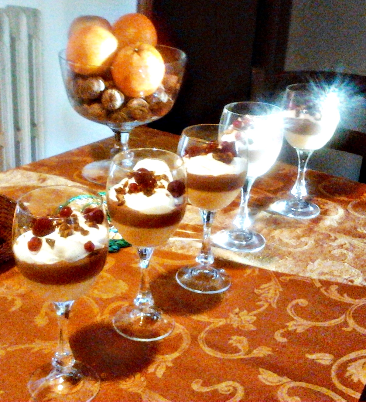 Cremes de gemas e de chocolate derretido