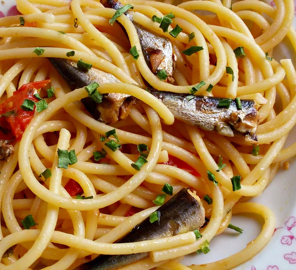 4. Ponha a massa na frigideira com a sardinhas refogadas, termine o cozimento juntando a água reservada se for preciso. Deve ficar cremoso.