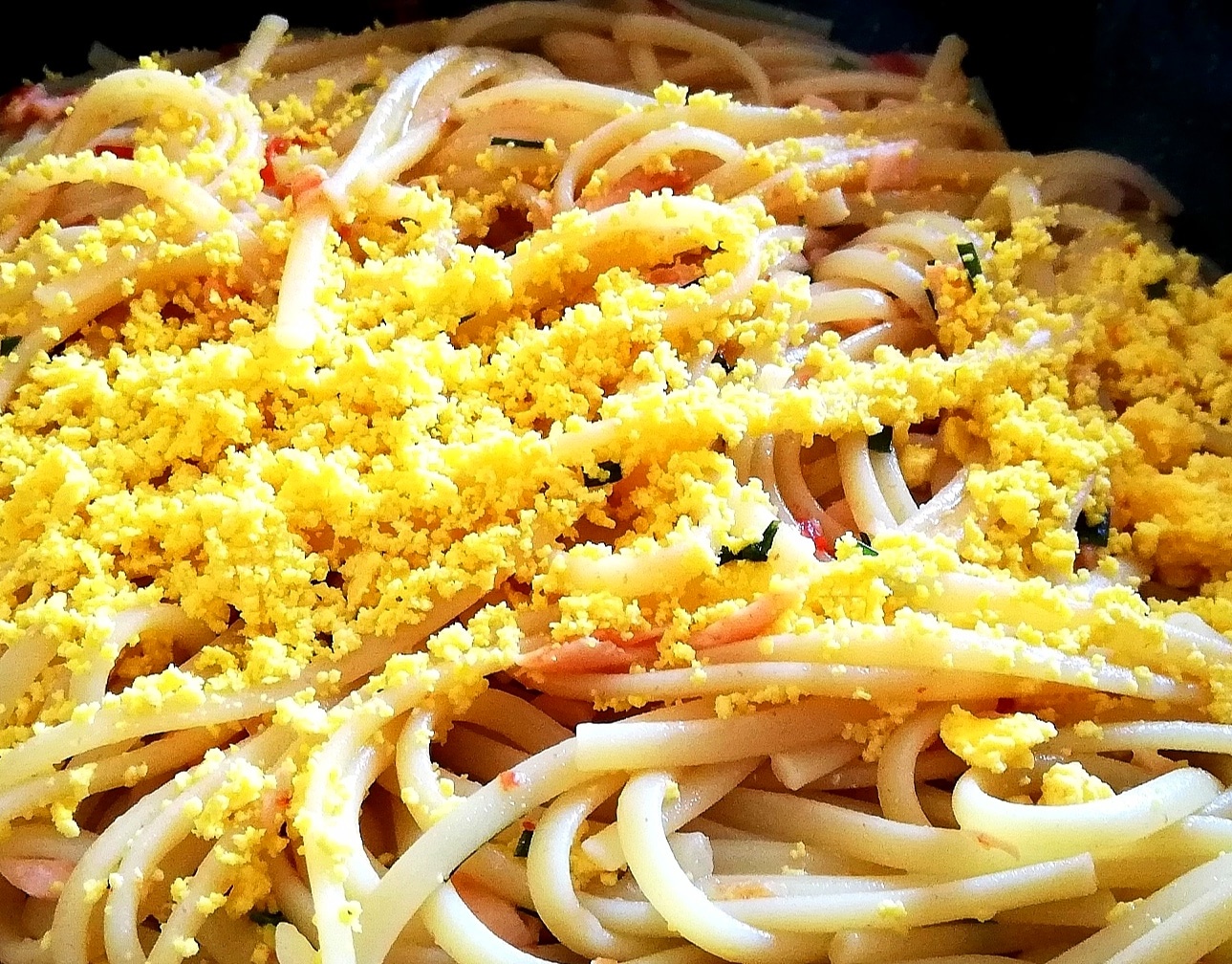 “Mimosa” se refere à primeira flor que aparece depois do inverno, na sua árvore frondosa e perfumada. As gemas esfareladas dão essa ideia, aqui temos bolos mimosa, salada mimosa e não podia faltar o espaguete mimosa. Completo em 20 minutos! Rápido e de muito efeito.