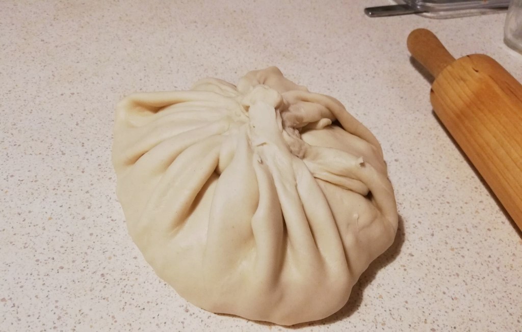 – Pegue as bordas com cuidado e junte com os dedos formando uma “trouxinha” como na foto.