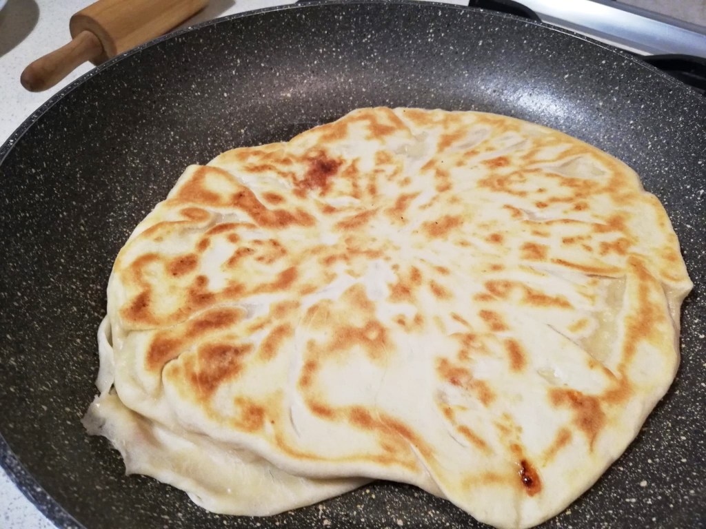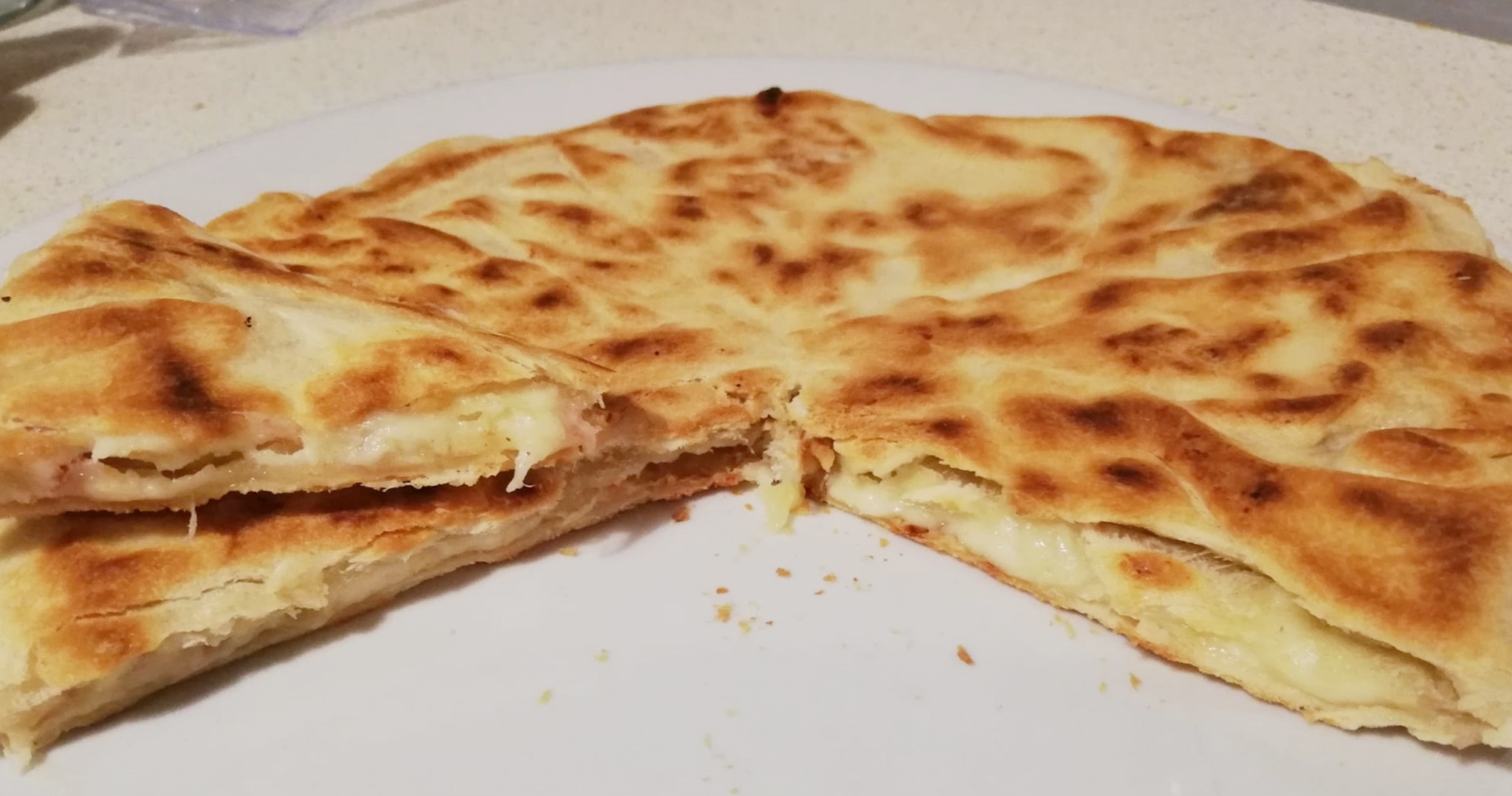 Não vai ao forno, não tem fermento, nem ovos. Pode-se fazer na frigideira e com poucos ingredientes. No recheio tem batata cozida para dar a cremosidade necessária. Use o queijo tipo mozzarella, ou outro que preferir, cuidado com os queijos “frescos” porque podem umedecer a massa. Perfeito para o jantar, ou almoço!