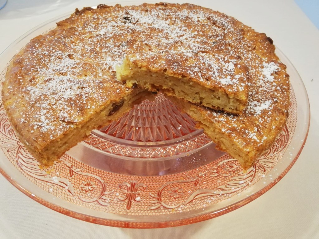 Esse bolo fica bem úmido, na preparação a maçã é ralada e também tem as uvas passas que ficam de molho no uísque. Super saboroso, pode ser servido até como sobremesa junto com chantilly ou creme de baunilha