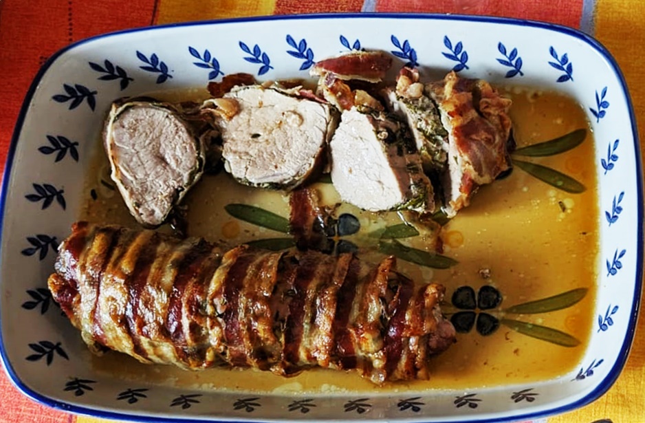 Quando estiver bem dourado o bacon, sirva cortado em fatias.