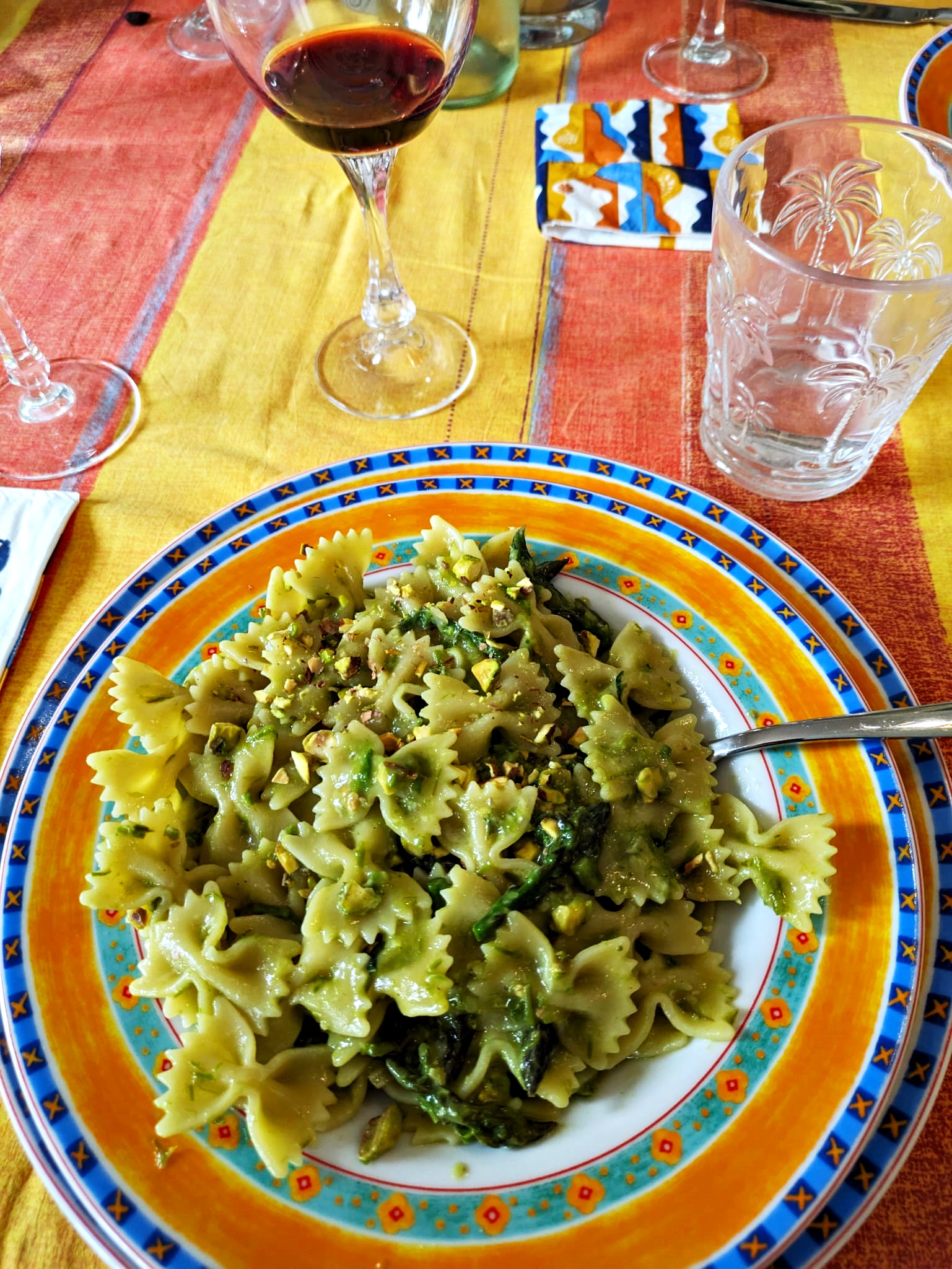 Toda vez que faço essa massa, é um sucesso! Porque agrada a todos principalmente por ser vegetariana e combina facilmente com outras pratos servidos. Eu fiz com aspargos frescos que tem por aqui na primavera, mas tem congelados que ficam ótimos também.