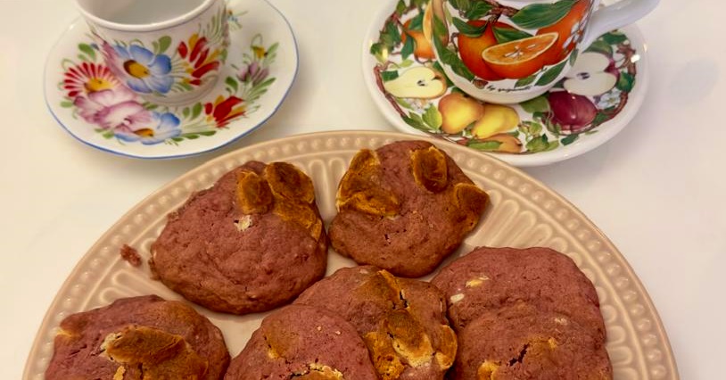 4. Por fim junte o chocolate em pedacinhos e a framboesa. Mexa delicadamente até incorporar bem à massa.