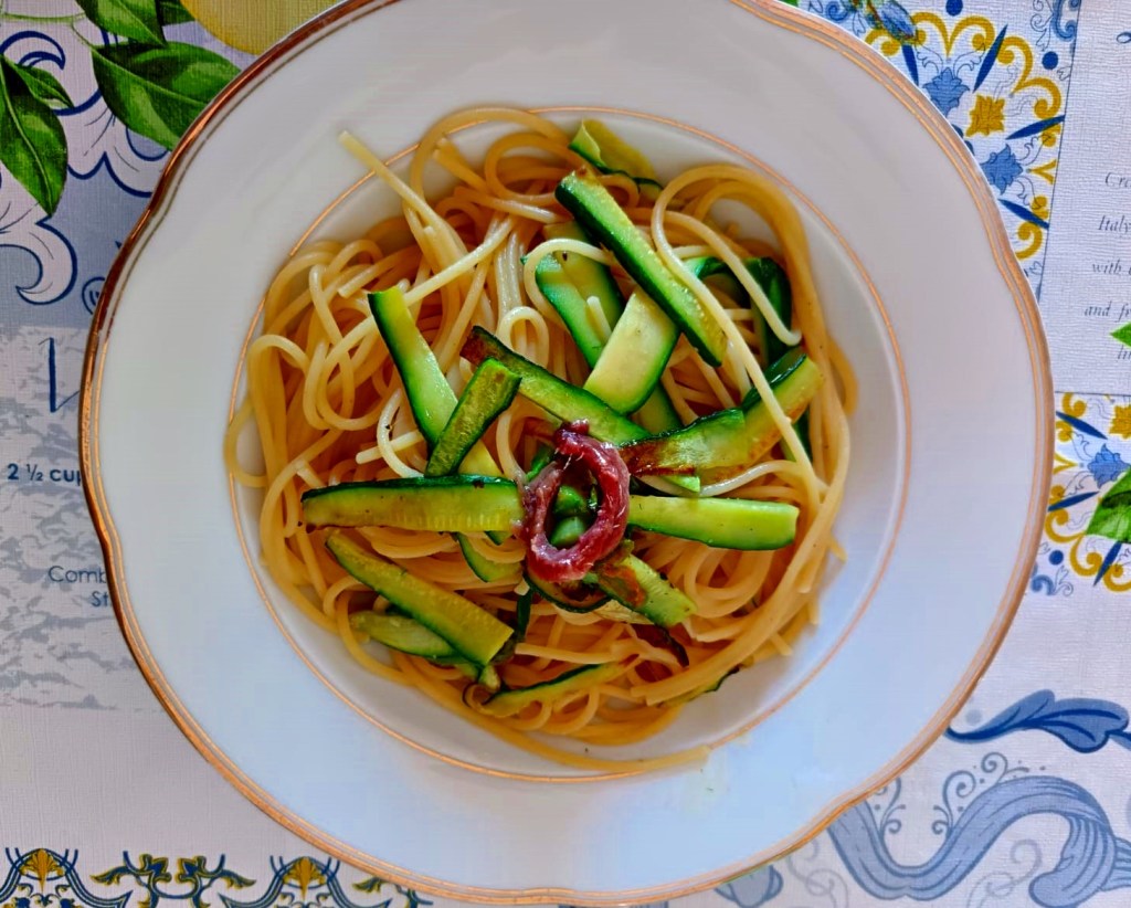 3 -Na mesma frigideira, coloque a manteiga, as aliches com fogo baixo e acrescente uma xicrinha de água do cozimento da massa.