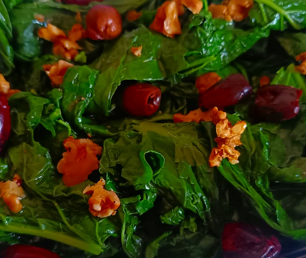 Um modo diferente de servir a couve do dia a dia, basta juntar um pouco de azeitonas pretas e nozes e tenperar com uma “citronnette”, mistura de azeite e suco de limão para dar um toque especial à nossa couve, e fica uma delícia!