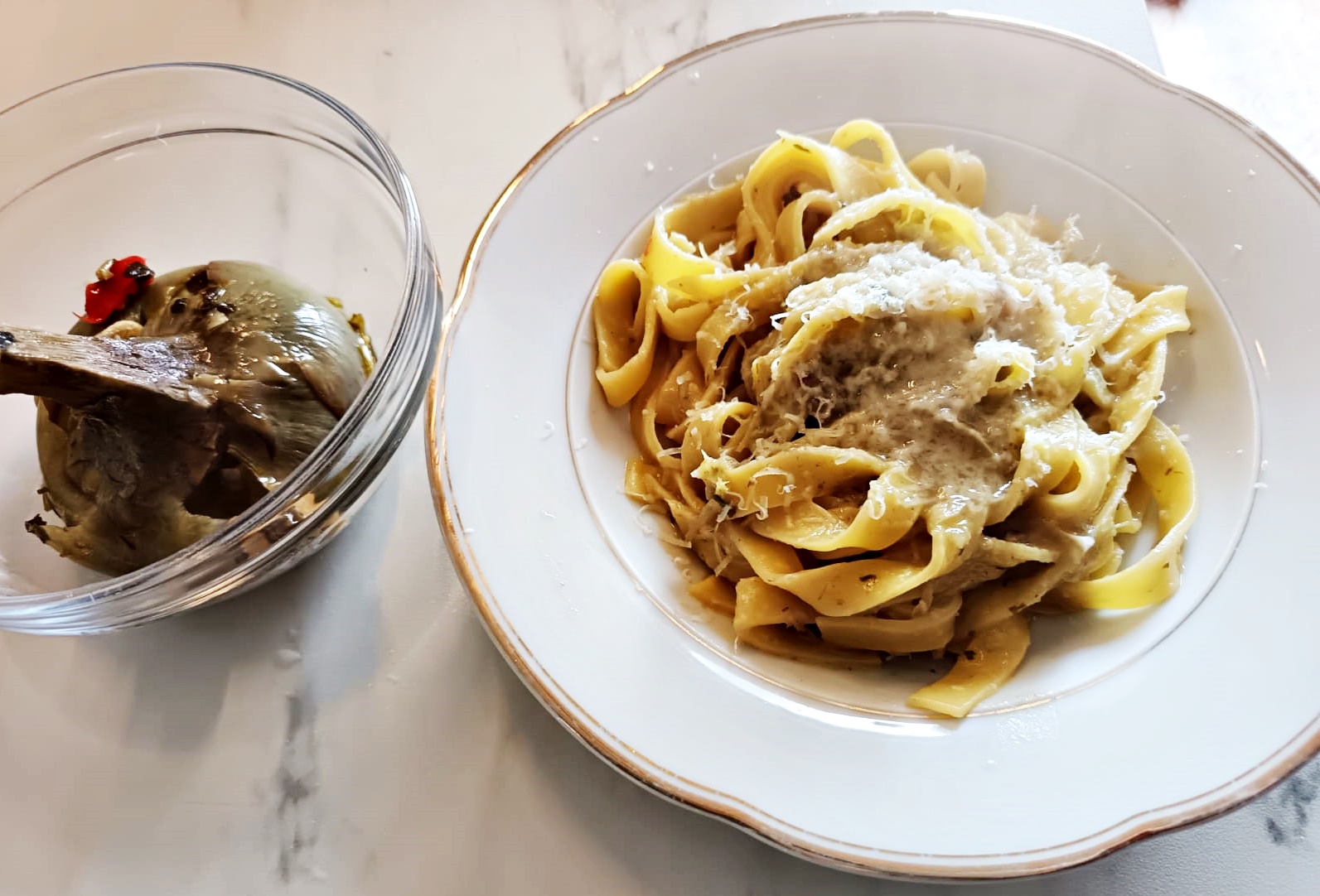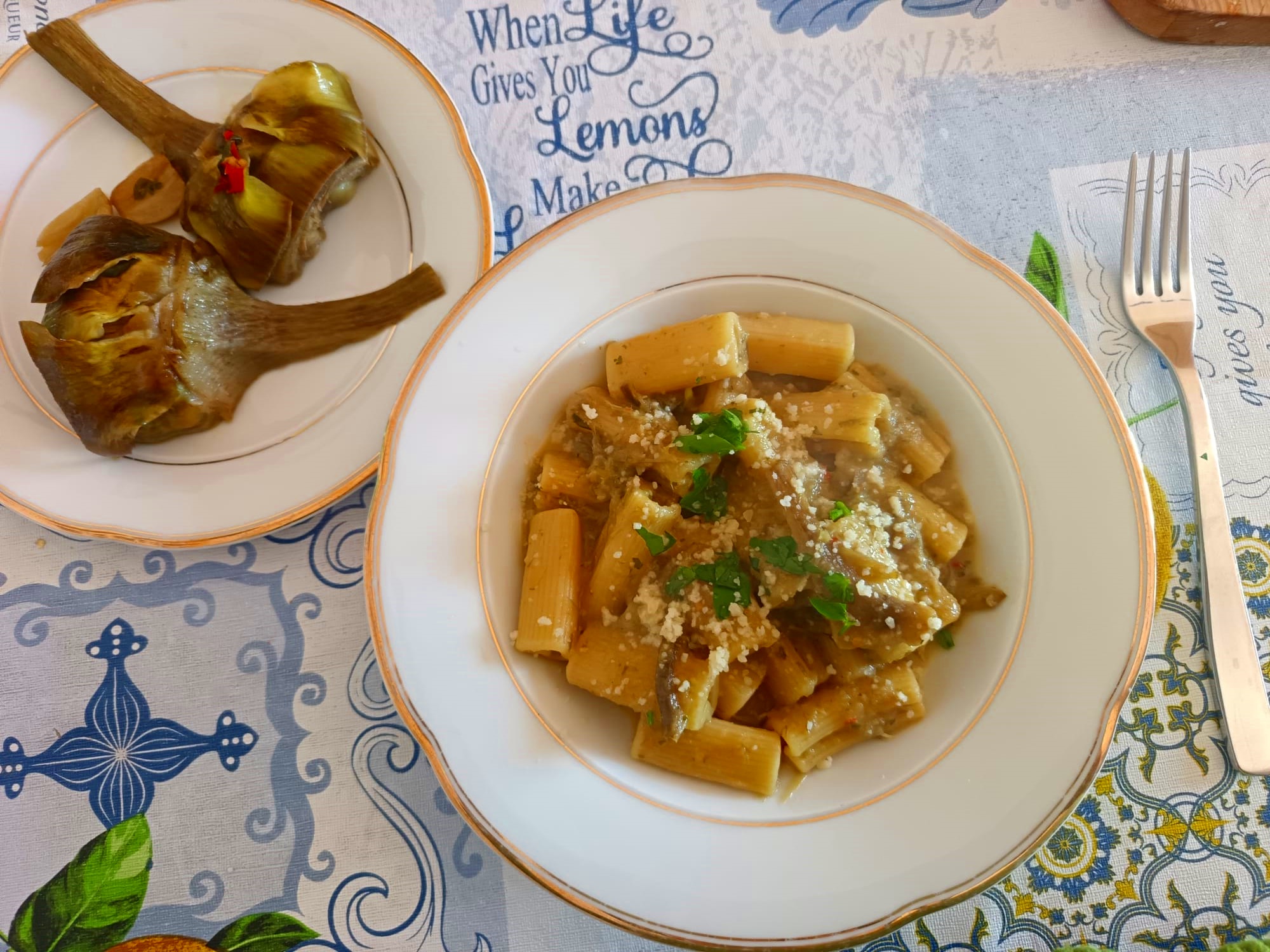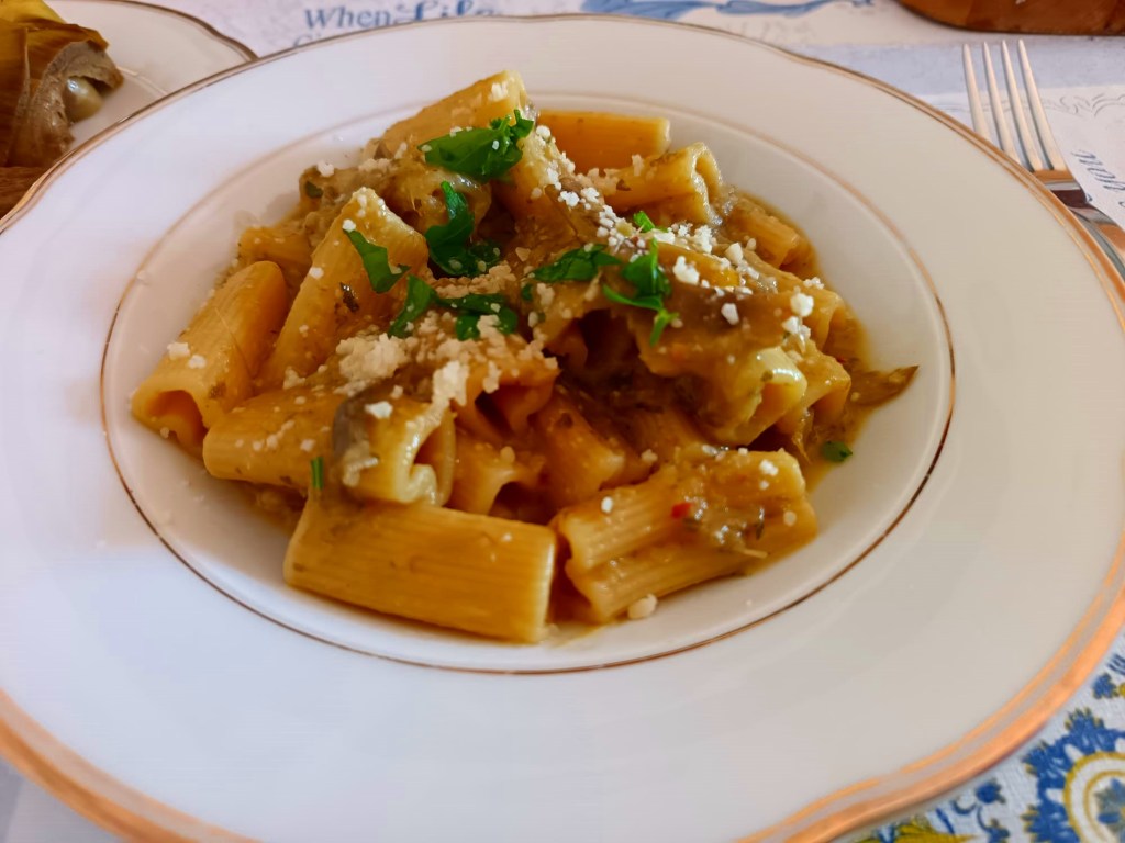 A alcachofra é uma verdura típica de Ladispoli, no litoral romano, onde acontece a “Sagra del Carciofo”, (Festa da Alcachofra) todos os anos na primavera. Aqui se come de várias maneiras, é muito amada pelos romanos, as mais conhecidas são “alla romana, “alla giudia”, frita, enfim com muita criatividade. Essa receita é básica. O mais complicado é limpar as alcachofras, mas com um pouco de paciência tudo é possível, indico um vídeo para dar as dicas, fica mais fácil. O sabor final compensa e muito!