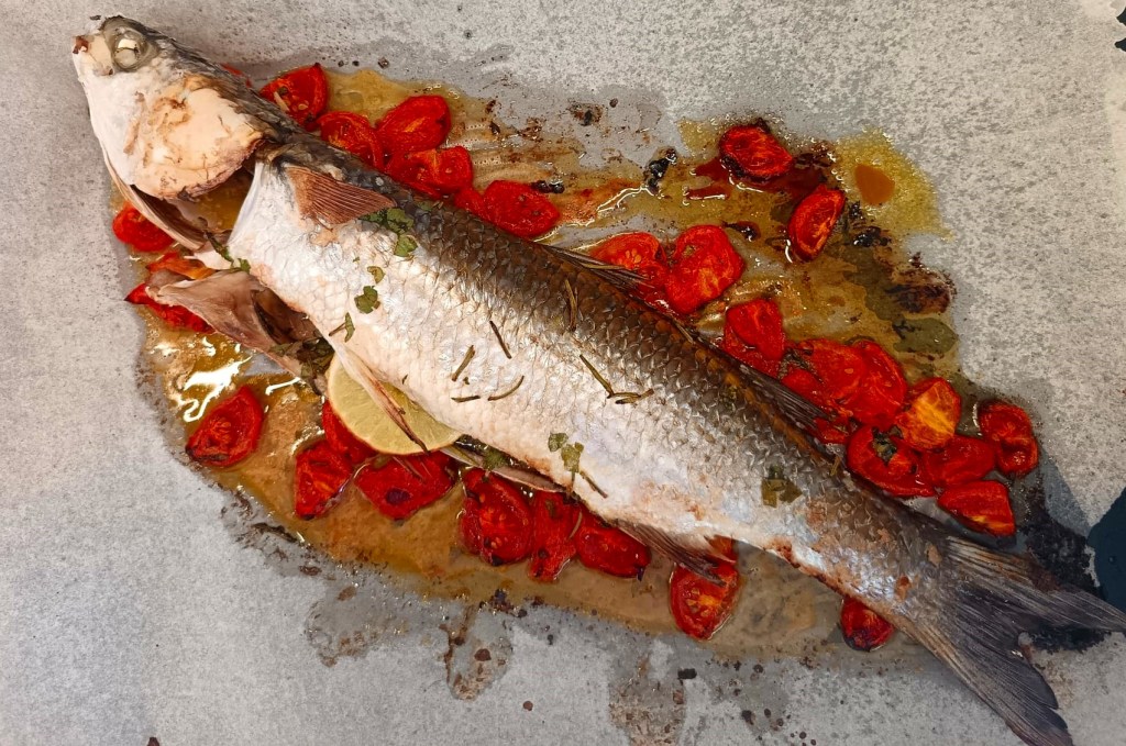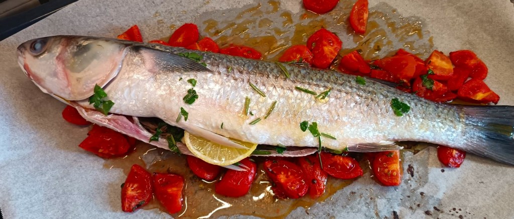 A taínha é um peixe da minha infância nos bons tempos de Camboriu. Aqui descobri novas receitas e essa é um clássico (em italiano “cefalo” ou “muggine”). Como sempre nas receitas italianas poucos ingredientes e muito sabor. Receita super fácil de fazer, acompanhe com arroz ou batatas, porque sai um molhinho muito bom.
